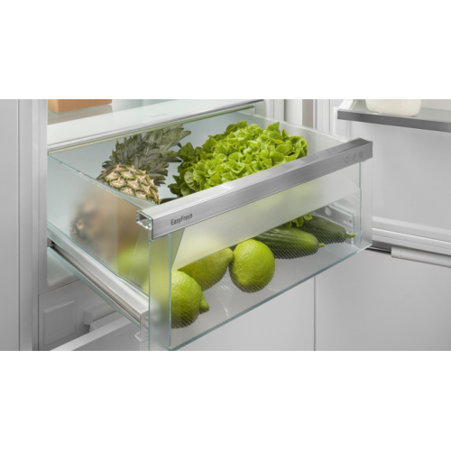 Liebherr ICNSd 5603-20 001 NoFrost Открывая морозильное отделение, вы хотите видеть замороженные продукты, а никак не лёд или иней. NoFrost защищает морозильную камеру от нежелательного обледенения, расходующего много энергии и порой стоящего достаточно дорого. NoFrost означает: никакого больше утомительного и продолжительного размораживания морозильного отделения, больше времени для других дел - и экономия денег. EasyFresh Наш контейнер EasyFresh гарантирует свежесть продуктов в вашем доме, как на рынке. Неупакованные фрукты, овощи или плоды: здесь всё хранится оптимально. Благодаря плотному закрытию контейнера под воздействием продуктов в нём повышается влажность воздуха. Таким образом, продукты остаются свежими долгое время. DuoCooling Благодаря двум полностью раздельным контурам охлаждения DuoCooling обеспечивает отсутствие воздухообмена между холодильным и морозильным отделениями. Продукты питания не засыхают,а запах не передаётся. А это значит: меньше выбрасывать, реже ходить за покупками, больше экономить и получать удовольствие. Сенсорный экран Реальность прикосновения: сенсорный экран позволяет легко и интуитивно управлять вашим устройством Liebherr. Все функции наглядно расположены на экране. Легким касанием пальца вы можете легко выбрать функции или проверить текущую температуру холодильника. Место для противня Хотите, чтобы домашний фруктовый пирог оставался свежим? Или приготовленная пицца, которую нужно будет поставить в духовку позже? Просто вставьте противень в ваш Liebherr - в нём достаточно места для хранения противня. Особенно практично: противень можно задвигать и выдвигать при открытой на 90° двери. VarioSpace У вас намечается летняя вечеринка, и нужно куда-то поставить на хранение многоуровневый торт-мороженое? Морозильник Liebherr прекрасно справится с этой задачей: в нем предусмотрено достаточно места для таких случаев. Благодаря системе VarioSpace можно просто снять отдельные ящики морозильника - и вуаля: вот оно, дополнительное пространство для хранения! Общие данные: Размеры: высота (см): 193,8 ширина (см): 54,1 глубина (см): 54,5 Общий объем/ Полезный объем: Холодильника (л): -/285 Холодильной камеры (л): -/215 Морозильной камеры (л): -/70 Тип управления: электронный Класс энергопотребления: A++ Климатический класс: SN-T (от +10°С до +43°С) Количество компрессоров: 1 Годовое потребление энергии: 223 кВтч/год Цвет: белый Холодильное отделение: Полки из закаленного стекла Полки на двери: Дверные полки из пластика с держателями для бутылок, форма для яиц Автоматическое оттаивание Светодиодное освещение, расположенное в верхней части Регулируемый диапазон температур: от +2 °C до +9 °C Климатические зоны: EasyFresh Суперохлаждение SuperCool Циркуляционное охлаждение: Система PowerCooling с угольным фильтром FreshAir Контейнер для фруктов и овощей EasyFresh-Safe Морозильное отделение: Система No Frost (Frost Free, Ноу Фрост) Время хранения при отключении питания: 14 ч Мощность замораживания в сутки: 10 кг Диапазон температур: от -15 °C до -26 °C Суперзаморозка SuperFrost Количество контейнеров: 3 Система VarioSpace FrostSafe: Полностью закрытые выдвижные ящики с прозрачной передней стенкой Дополнительная информация: ЖК-дисплей монохромный, сенсорный экран Управление: Touch Цифровая индикация температуры для холодильной и морозильной камер Сигнал двери: оптический и акустический Сигнал при неисправностях: оптический и акустический 