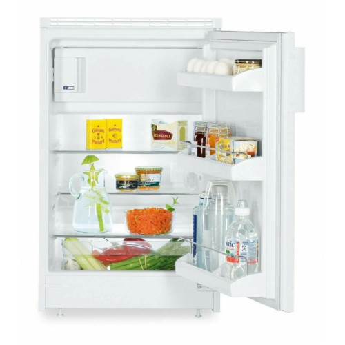 Описание модели Либхер UK 1414 Встраиваемый холодильник Liebherr UK 1414 — это современная и стильная модель с морозильником из серии Plus. Ее очень легко встроить под столешницу, так как для ее установки не нужны боковые стенки. Корпус холодильника сделан из стали, и он прекрасно впишется в любой интерьер. Устройство имеет класс энергоэффективности А+, что позволяет тратить на 10% меньше электроэнергии — это благоприятно сказывается на экологии и сокращает выплаты по коммунальным счетам. Внутреннее пространство освещают светодиодные лампы — они долговечны, очень экономичны и не нагреваются, что позволяет поддерживать идеальную температуру в камере. Встраиваемый холодильник Либхер UK 1414 имеет электромеханический тип управления: настроить температуру можно с помощью поворотного регулятора. В этой модели установлен компрессор, использующий безопасный хладагент изобутан R600a, который не вредит окружающей среде. Автоматический режим SuperCool позволяет дольше сохранить продукты в холодильной камере. После активации режима оборудование начинает активно снижать температуру в течение нескольких часов. Она идеально подойдет для большой загрузки продуктов за один раз, так как выделяемое из них тепло не изменит температуру внутри. Автоматическая система размораживания холодильной камеры NoFrost не позволяет влаге, выделяемой из продуктов, конденсироваться на стенках и замерзать. У морозильного отделения разморозка проводится вручную. Дизайн внутренней камеры кажется еще элегантнее благодаря 3 полкам из безопасного стекла GlassLine. Они очень практичны, так как изготовлены из небьющегося, устойчивого к царапинам и легко моющегося материала. Также, прибор оснащен отделением для бутылок, которое идеально подходит для устойчивых высоких упаковок. оснащен 92 литровой холодильной камерой и встроенной морозилкой 13 литров. Ключевые особенности: Автоматическое размораживание холодильной камеры Дверца с декоративной панелью Для установки под столешницу не нужны боковые стенки шкафчика
