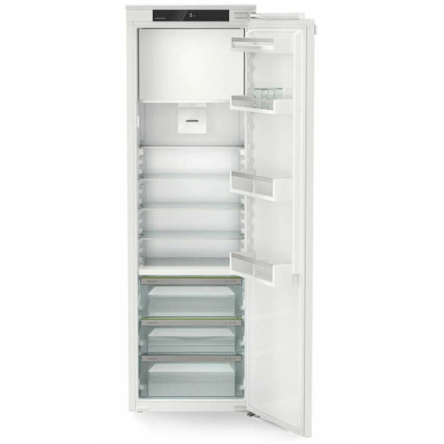Описание модели Либхер IRd 5101 Встраиваемый холодильник Liebherr IRD 5101 — это превосходное сочетание функциональности и эстетики, созданное немецким производителем бытовой техники. Товар относится к серии Pure и классу Comfort, подчеркивая его высокое качество и удобство использования. Габариты устройства составляют 177×55.9×54.6 см, что позволяет его легко встроить в любую кухню, не занимая лишнего пространства. Особое внимание заслуживает элегантный дизайн холодильника. Корпус изготовлен из нержавеющей стали, что обеспечивает его долговечность и сопротивляемость к коррозии. Сенсорные элементы управления и дисплей Touch Display добавляют современный и технологичный вид. Внутренняя подсветка осуществляется светодиодными колоннами, которые обеспечивают равномерное освещение и удобство использования. Прибор оборудован системой размораживания и циркуляционного охлаждения PowerCooling, которые позволяют поддерживать оптимальную температуру и свежесть продуктов. Фильтр с активированным углем помогает устранять нежелательные запахи, а автоматический режим SuperCool быстро охлаждает продукты после покупки. Внутреннее пространство холодильной камеры организовано с учетом максимального удобства использования. Всего пять полок из закаленного стекла, две из которых регулируемые, и три секционные/складные. Также предусмотрены специальные отделения для бутылок, консервов и яиц. Зона свежести EasyFresh позволяет сохранить продукты в идеальном состоянии дольше. Морозильная камера расположена сверху и имеет объем 27 литров. Она оснащена системой охлаждения SmartFrost и ручной системой размораживания. Внутри морозильной камеры находится одна полка из закаленного стекла. Устройство имеет класс энергопотребления E (старое обозначение — A++), что говорит о его энергоэффективности. Кроме того, холодильник оснащен функциями EnergySaver, HolidayMode и SabbathMode, которые позволяют оптимизировать его работу в зависимости от потребностей пользователя. Встраиваемый холодильник Либхерр IRD 5101 — это надежное и функциональное решение для вашей кухни, которое обеспечит сохранность и свежесть продуктов на долгое время. Ключевые преимущества: Высокая энергоэффективность и функциональность Современный дизайн и удобство использования Надежность и долговечность от немецкого производителя