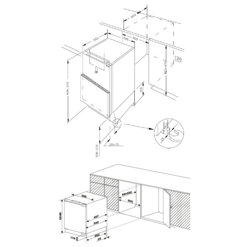 Meferi MBR82 LOW FROST LIGHT Частота, Гц 50 Сила тока, А 0.8 Объем холодильной камеры, л 95 Объем морозильной камеры, л 16 Размораживание холодильной камеры Капельное Размораживание морозильной камеры Ручное Тип компрессора Стандартный Хладагент R600а/30 г Климатический класс ST Система охлаждения Капельная Материал ящиков Пластик Перенавешиваемые двери Да Количество полок на двери 2 Мощность (Вт) 80 Класс энергопотребления A+ Высота, см 820 Ширина, см 596 Глубина, см 55 Тип управления Электромеханический Цвет Белый Дисплей Нет Уровень шума, Дб 39 Напряжение питания, В 220-240 Длина шнура, м 1.8 Сигнал открытой двери Есть Количество полок холодильной камеры 2 Количество ящиков морозильника 1 Максимальное время хранения в морозильной камере при отключении 11 Материал полок холодильной камеры Стекло Мощность замораживания кг/в сутки 2.6 Потребление энергии в год, кВт*ч/год 173 Тип внутренней подсветки Светодиодное Тип крепления фасадов Жесткое Вес товара без упаковки (нетто), кг 25.5 Тип установки/монтажа Встраиваемая