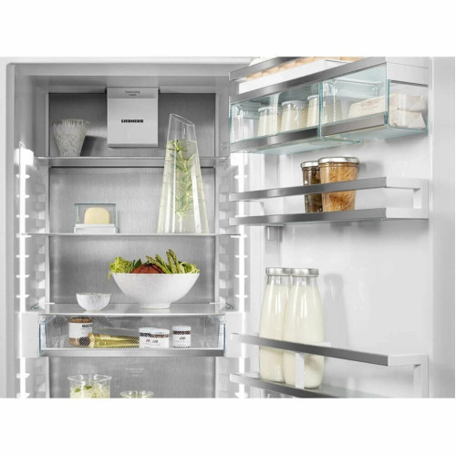 Встраиваемый холодильник Liebherr IRBCi 4150 — это премиальный однокамерный холодильник без морозильника, произведенный в Германии. Это устройство совмещает в себе эстетику и функциональность, обеспечивая превосходное качество хранения продуктов. С его помощью вы сможете улучшить организацию вашей кухни и оптимизировать использование пространства. Дизайн модели отличается строгими линиями и современным стилем, что делает его идеальным дополнением к любому интерьеру. Корпус изготовлен из стали, что гарантирует его долговечность и надежность. Благодаря обработке SmartSteel, поверхность устойчива к отпечаткам пальцев, что облегчает уход за устройством. Техника оснащена технологией SmartDevice-Box, которая позволяет управлять ее функциями с помощью сенсорных элементов управления на Touch&Swipe дисплее. Это обеспечивает удобство использования и позволяет быстро настраивать параметры холодильника в соответствии с вашими потребностями. Особенностью модели является наличие различных режимов работы, включая EnergySaver, NightMode, PartyMode и HolidayMode. Эти функции позволяют оптимизировать энергопотребление устройства, а также подстраивать его под конкретные сценарии использования. Кроме того, холодильник оснащен системой автоматического размораживания и циркуляционного охлаждения PowerCooling. Внутреннее пространство прибора продумано до мелочей. Он имеет объем холодильной камеры 188 литров, а полезный объем составляет 137 литров. Внутри вы найдете 6 полок из закаленного стекла, секционную полку и универсальную полку для бутылок. Система выдвижения ящиков обеспечивает удобный доступ к продуктам. В холодильнике предусмотрены специальные отделения для хранения масла, сыра и консервов. Отделения DrySafe и HydroSafe позволяют сохранять продукты свежими на долгое время. Все это делает холодильник Liebherr идеальным выбором для тех, кто ценит качество и комфорт. Ключевые преимущества: Технология SmartDevice-Box для удобного управления Система автоматического размораживания и циркуляционного охлаждения Специальные отделения для хранения различных продуктов