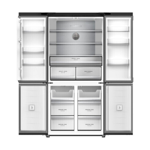 Предлагая широкий выбор настроек и режимов, двухкамерный холодильник TESLER RCD-547BI остаётся простым в управлении, и поможет сохранить свежесть продуктов надолго. Устройство обладает уникальным дизайном, который позволяет частично встраивать его в кухонный гарнитур: глубина корпуса составляет 60 см, поэтому он может быть установлен в одну линию со стандартной кухонной мебелью. Благодаря инновационной системе охлаждения расстояние от боковых сторон до корпусной мебели может составлять всего 5 мм. Таким образом исключается перегрев, что способствует продлению срока службы устройства. Продуманная конструкция обеспечивает минимальный зазор при открытии дверей холодильника, что делает удобным его использование в ограниченных пространствах. Встроенная в заднюю стенку пластина из алюминия эффективно распределяет холод, обеспечивая стабильную температуру внутри холодильной камеры. Это позволяет долго сохранять свежесть продуктов даже при частом открывании дверцы. Благодаря этой технологии в холодильной камере исключаются сильные перепады температуры, что позволяет увеличить сроки хранения продуктов. Инновационная технология Metal Cooling поддерживает стабильную работу холодильника, а стильный дизайн пластины подарит вам эстетическое удовольствие от пользования устройством. Постоянство температуры и влажности внутри холодильника гарантировано — инверторный компрессор работает эффективно, не создавая лишнего шума. Высокий класс энергоэффективности A+ позволит сократить расходы на электроэнергию. Благодаря технологии Full No Frost лёд не намерзает внутри камер, там поддерживается оптимальный для хранения продуктов микроклимат без образования инея. Большой полезный объем холодильника в 541 л предоставит достаточно места для хранения продуктов и напитков. Холодильное отделение с полезным объемом 320 л оборудовано просторными полками и дверными карманами, некоторые из которых вы можете убрать в случае необходимости. Отсек с повышенной влажностью и отделение с вариативной температурой помогут создать оптимальные условия для различных видов продуктов, сохраняя их свежесть и вкус. Над ними располагается фреш-зона для овощей и фруктов. Полезный объем морозильного отделения 189 л предоставит вам достаточно места для длительного хранения продуктов и заморозки заготовок на зиму. Пространство разделено на 4 больших ящика и 2 выдвижных поддона, и позволит разместить даже габаритные продукты. Если нужно одномоментно заморозить большой объём — поможет функция «Быстрая заморозка», которая установит в морозильной камере температуру -28°С на 24 часа. Встроенная светодиодная подсветка всегда поможет найти нужный продукт без существенного расхода электроэнергии. Цветной LED дисплей поможет настроить нужные параметры для каждой из камер по отдельности, либо активировать автоматические режимы. Температура холодильной камеры может быть установлена в диапазоне от 2⁰С до 8⁰С, температура морозильной – от -23 ⁰С до -15⁰С. B случае необходимости панель управления можно заблокировать. Охладить большое количество только что купленных продуктов поможет функция «Быстрое охлаждение», при которой температура в холодильной камере устанавливается на 2⁰С. Система дверей Cross Door (Кросс-дор) обеспечивает максимально лёгкий доступ ко всему содержим