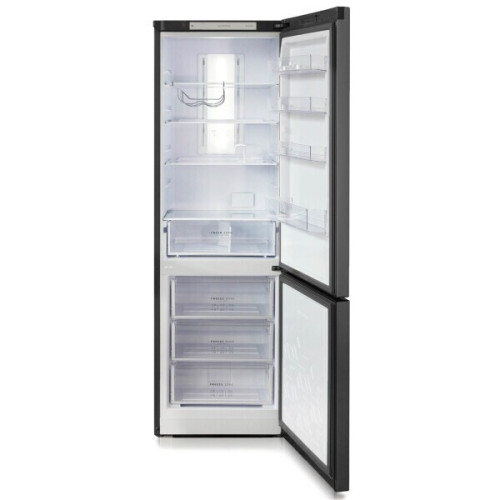 Холодильник с морозильником Бирюса представлен в лаконичном сером корпусе с общей вместимостью 340 л. Стеклянные полки легко переставляются для выбора удобной высоты и хранения еды в кастрюлях и больших банках. Благодаря надежной изоляции Бирюса удерживает внутри холод до 17 ч, а потому можно не бояться долгого отключения света. Морозильный шкаф с режимом суперзаморозки способен нагнетать температуру -18 °C и в сутки замораживать 3 кг продуктов. Технология No Frost защищает от появления наледи в обеих камерах, а многопоточная система быстро и равномерно охлаждает продукты.