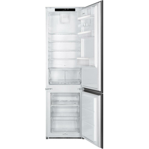 Встраиваемый холодильник Smeg C41941F1 — функциональный и простой в управлении прибор, который обеспечивает сохранность овощей, фруктов и других продуктов. Общий объем составляет 289 литров, чего будет достаточно даже для большой семьи. Класс энергопотребления А+ оптимизирует расход электроэнергии. Прибор имеет автоматическую систему размораживания холодильной камеры и ручную морозильной. Это означает, что устройство будет автоматически выполнять разморозку холодильного отделения, а морозилку нужно будет размораживать вручную. Функция «Отпуск» позволяет отключить холодильное отделение и оставить работающим только морозильное, что будет удобно, когда вы уезжаете в отпуск или командировку. Светодиодное освещение равномерно распределяет свет по всей холодильной камере, что обеспечивает хороший обзор внутреннего пространства и позволяет легко находить нужные продукты. Если пользователь забудет закрыть дверцу устройства, Смег C 41941 F1 подаст звуковой сигнал. Внутри имеются 4 регулируемые стеклянных полки, на которых можно разместить продукты разного размера и высоты. Также есть 1 ящик для овощей и фруктов, который сохраняет их свежесть и питательные свойства. На двери холодильной камеры расположены 4 полки, 1 полка с металлической окантовкой — регулируемая. Две полки на двери имеют прозрачную крышку, которая защищает продукты от пыли и грязи. Для хранения бутылок предусмотрена специальная полка, а для яиц — подставка. Морозильная камера расположена снизу, что облегчает доступ к ней и обеспечивает удобное хранение продуктов. В ней есть три вместительных ящика и форма для льда. Если случайно выключится электричество, замороженные продуты могут храниться в морозилке до 11.5 часов и не успеют растаять. Ключевые преимущества: Автоматическая система размораживания Функция Отпуск Светодиодное освещение