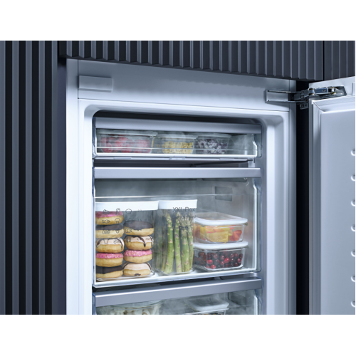 Характеристики Высота177,2 Глубина, см55 Дисплейесть Зона свежестиесть Класс энергопотребленияE Общий объем267 Объем морозильной камеры84 Объем холодильной камеры183 Размораживание морозильной камерыручное Размораживание холодильной камерыкапельная система Расположение морозильной камерыснизу Тип установкивстраиваемые Тип холодильникахолодильник с морозильником Цветбелый Ширина, см54,1 Описание товара Тип холодильник Тип установки встраиваемый Дверной упор справа Освещение светодиодное ComfortFrost есть DuplexCool есть VarioRoom есть Система управления EasyControl Суперохлаждение есть Суперзаморозка есть Количество температурных зон 2 зоны Количество полок в холодильной камере 4 полки Подставка для бутылок есть Количество ящиков для хранения свежих продуктов 1 ящик Количество полок на двери 3 полки Количество ящиков для морозильной камеры 3 ящика Класс энергоэффективности E Потребление энергии в год 228,86 кВтч Потребление энергии за 24 часа 0,62 кВтч Звуковая дверная сигнализация есть Габариты (ВхШхГ) 1772х541х548 мм Габариты ниши (ВхШхГ) 1772-1780х560-568х550 мм Климатический класс SN-ST Общий полезный объем 267 л Полезный объем холодильной камеры 183 л Полезный объем морозильной камеры 84 л Размораживание холодильной камеры автоматическое Размораживание морозильной камеры ручное Срок хранения в случае неисправности 9 ч Мощность замораживания 4,2 кг/24 ч Напряжение 220-240 В Длина кабеля питания 2,3 м Лоток для льда есть Вес 53,7 кг Срок гарантии 1 год