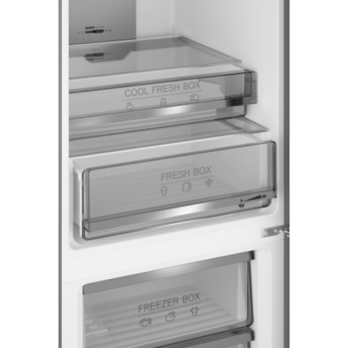 Weissgauff WRK 195 D Full NoFrost Dark Grey Glass Габариты устройства 595 х 635 х 1953 см - это оптимальные параметры, при выборе которых инженеры Weissgauff руководствовались целью создать для вас максимально вместительный и функциональный холодильник, который при этом окажется удобен в установке и не будет занимать лишнее место на вашей кухне! Объем холодильной камеры 240 литров - дает вам полную уверенность в том, что вы легко сможете разместить в холодильнике сразу все необходимые продукты. А особая эргономика внутренних полок позволит вам оптимизировать внутреннее пространство камеры в случае необходимости! Объем морозильной камеры 95 литров, обеспечит гарантию того, что данная модель предоставит вам достаточно места для заморозки и длительного хранения продуктов! Система размораживания Full No Frost - это наиболее передовая и эффективная система охлаждения обеих камер устройства (и холодильной, и морозильной), обеспечивающая принудительную циркуляцию холодного воздуха и предотвращающая образование наледи на стенках! Функция суперохлаждения прекрасно подходит для быстрого охлаждения продуктов, размещаемых в холодильном отделении! Функция суперзаморозки способна перевести морозильное отделение на максимально низкую температуру на несколько часов, после чего автоматически вернуть настройку на предыдущий выбранный режим! Это позволит быстро и эффективно заморозить свежие продукты, помещенные в морозильную камеру! Контейнеры для овощей и фруктов, позволяющие создавать отдельный микроклимат для продуктов, требовательных к поддержанию определенного уровня влажности, настраивать который вы можете самостоятельно! Удобное сенсорное управление с крупным цифровым дисплеем - это настоящая гордость Weissgauff, ведь оно не только является интуитивно понятным, но и великолепно реагирует на прикосновения с первого нажатия даже в том случае, если руки влажные или прохладные Класс энергопотребления А+ позволит вам еще раз убедиться в том, что Weissgauff способны создавать по-настоящему эффективные устройства, не расходующие при этом больше электричества, чем необходимо! Расход электроэнергии 303 кВт/год - это прямое подтверждение того, что Weissgauff предлагает Вам устройство, обладающее не только высокой производительностью и великолепным дизайном, но и способное помочь вам ощутить существенную выгоду при оплате счетов за электроэнергию! LED-освещение, автоматически активирующееся при открывании дверцы холодильной камеры, наполнит ваш холодильник мягким и кристально чистым светом, позволяющим легко увидеть все расположенные в нем продукты! Перенавешиваемая дверь позволит вам самостоятельно выбрать, в какую сторону будет осуществляться открывание холодильника, что особенно важно при планировании его размещения! Полки, выполненные из закаленного стекла, это уверенность в их надежности и долговечности, ведь мы в Weissgauff знаем, как важно внимание к каждой детали, когда речь идет о действительно качественной бытовой технике! Характеристики Тип: Холодильник с морозильником Размораживание: Full No Frost (система NoFrost и в холодильной, и в морозильной камерах) Ширина, мм: 595 Глубина, мм: 635 Высота, мм: 1950 Общий объем, л: 378 Объем холодильной камеры, л: 240 Объем морозильной камеры, л: 95 Количество ящиков : 5 Количество полок : 3 Зона свежести: Есть Суперохлаждение : Есть Суперзаморозка: