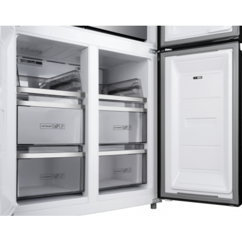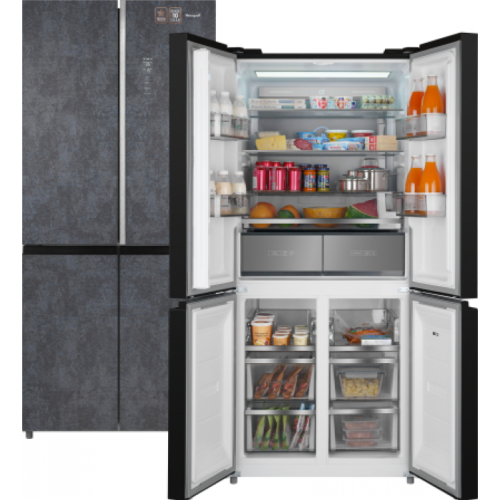 Weissgauff WCD 590 NoFrost Inverter Premium Biofresh Rock Glass Габариты устройства 830 х 718 х 1891 мм  - это оптимальные параметры для FrenchDoor модели, при выборе которых инженеры Weissgauff руководствовались целью создать для вас максимально вместительный и функциональный холодильник, который при этом окажется удобен в установке и не будет занимать лишнее место на вашей кухне! Объем холодильной камеры 359 литров  - дает вам полную уверенность в том, что вы легко сможете разместить в холодильнике сразу все необходимые продукты. А особая эргономика внутренних полок позволит вам оптимизировать внутреннее пространство камеры в случае необходимости! Объем морозильной камеры 180 литров, обеспечит гарантию того, что данная модель предоставит вам достаточно места для заморозки и длительного хранения продуктов! Зона свежести, оснащенная отдельной панелью управления микроклиматом, позволит подобрать оптимальный режим для хранения продуктов. Инверторный двигатель - это совершенно новая ступень эффективности в сравнении с традиционными линейными моделями! Уменьшенное энергопотребление, минимизация уровня шума, а также увеличение срока службы вашего холодильника - вот лишь некоторые из преимуществ, которые дает инверторная технология в этом замечательном устройстве от Weissgauff! 10 лет гарантии на инверторный двигатель - это живое подтверждение уверенности Weissgauff в качестве выпускаемой нами продукции! Технология Multi Air Flow, перенаправляет потоки холодного воздуха в обеих камерах вашего устройства для обеспечения наилучшего эффекта охлаждения помещенных продуктов! Инновационная система Metal-Tech Cooling, реализованная благодаря специальной металлической пластине, расположенной на задней стенке холодильного отделения, позволит стабилизировать температуру при частых открытиях дверцы и помещении/извлечении продуктов из камеры, что обеспечивает более эффективное управление охлаждением и сохраняет свежесть ваших продуктов дольше! Блокировка от детей защитит ваш холодильник от непреднамеренного изменения настроек вследствие нажатия элементов панели управления! Система размораживания Full No Frost - это наиболее передовая и эффективная система охлаждения обеих камер устройства (и холодильной, и морозильной), обеспечивающая принудительную циркуляцию холодного воздуха и предотвращающая образование наледи на стенках. Функция суперохлаждения прекрасно подходит для быстрого охлаждения продуктов, размещаемых в холодильном отделении! Функция суперзаморозки способна перевести морозильное отделение на максимально низкую температуру на определенное время, после чего автоматически вернуть настройку на предыдущий выбранный режим! Это позволит быстро и эффективно заморозить свежие продукты, помещенные в морозильную камеру. Мощность замораживания до 8,5 кг/сутки это поистине впечатляющий показатель, позволяющий вам с легкостью разместить в морозильную камеру сразу большой объем свежих продуктов! Столь высокий показатель обусловлен стремлением Weissgauff создавать по-настоящему эффективные устройства, в качестве которых вы действительно можете быть уверены! Удобное сенсорное управление с крупным цифровым дисплеем - это настоящая гордость Weissgauff, ведь оно не только является интуитивно понятным, но и великолепно реагирует на прикосновения с первого нажатия даже в том случае, ес