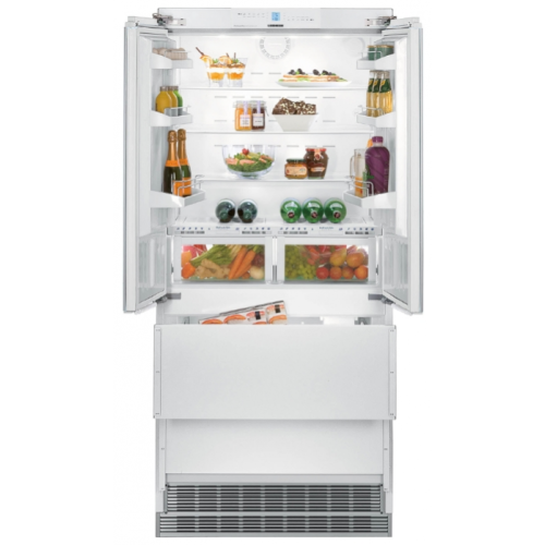 Liebherr ECBN 6256 Встраиваемый двухкамерный холодильник класса PremiumPlus с нижним расположением морозильной камеры Общие данные: Размеры: высота (см): 202,7 ширина (см): 91 глубина (см): 61,5 Общий объем/ Полезный объем: Холодильника (л): 585/471 Холодильной камеры (л) (вкл. зону свежести): 402/357 Морозильной камеры (л): 183/114 Зона свежести (л): 73 Тип управления: электронный Класс энергопотребления: A++ Климатический класс: SN-T (от +10°С до +43°С) Количество компрессоров: 2 (инверторные) Годовое потребление энергии: 322 кВтч/год Цвет: белый Холодильное отделение: 4 полки из стекла, 3 из них регулируемые и 1 секционная 6 полочек на дверцах Материал полок на двери: закаленное стекло с обрамлением из высококачественной нержавеющей стали Зона свежести BioFresh (БиоФреш) Внутреннее освещение камеры BioFresh: светодиодное Полностью выдвигаемые контейнеры секции BioFresh с доводчиками Контейнеры HydroSafe на телескопических направляющих - с регулируемой влажностью для овощей и фруктов: 2 Автоматическое размораживание Светодиодные колонны и потолочное светодиодное освещение Автоматическая функция SuperСool Лоток для яиц Вентилятор Морозильное отделение: Система No Frost (Frost Free, Ноу Фрост) Время сохранения холода при отключении электроэнергии: 40 ч* Мощность замораживания: 11 кг/сутки Внутреннее освещение: светодиодное Автоматическая функция SuperFrost с автоматическим отключением через 65 часов (макс.) Выдвижные ящики: 2 Ледогенератор IceMaker с постоянным подключением воды Объем ледяных кубиков: 1.3 кг/сутки Макс. запас кубиков льда: 2.7 кг Дополнительная информация: Регулируемые контуры охлаждения: 2 Дисплей MagicEye с цифровой индикацией температуры Обслуживание системы управления: сенсорное Индикатор температуры холодильной камеры: внутри цифровой Индикатор температуры морозильной камеры: внутри цифровой Температура в морозильной камере регулируется независимо от температуры в холодильной камере Сигнализация неплотно закрытой двери холодильной камеры: акустическая Сигнализация неплотно закрытой двери морозильной камеры: акустическая Сигнализация неисправности: oптическая и акустическая Доводчик двери SoftSystem Регулировочные ножки: 4 Уровень шума: 43 дБ Габариты ниши для встраивания: 203,2/91,5/62,5 см Жесткое крепление двери door-on-door Угол открывания двери: 115° Габариты (ВхШхГ) (см) 202,7х91х61,5 Общий объем / Полезный объем Холодильника (л) 585 / 471 Холодильной камеры (л) 402 / 357 Морозильной камеры (л) 183 / 114 Зона свежести (л) 73 Количество камер 3 Количество дверей 2 Тип управления электронный, сенсорный Дисплей MagicEye, с цифровой индикацией температуры Система No Frost (Frost Free, Ноу Фрост) морозильное отделение Количество компрессоров 2 Мощность замораживания (кг/сут) 11 Режим суперзамораживания Двери неперенавешиваемые Полки стекло Льдогенератор IceMaker, aвтоматический Звуковая сигнализация Защита от детей Класс энергопотребления А++ Годовое энергопотребление (кВт·ч в год) 322 Время сохранения холода при отключении электроэнергии (ч) 40 Климатический класс SN-T (от +10°С до +43°С) Хладагент R600a Цвет белый Гарантия 2 года Страна-производитель Австрия Бренд: Liebherr Модель: ECBN 6256
