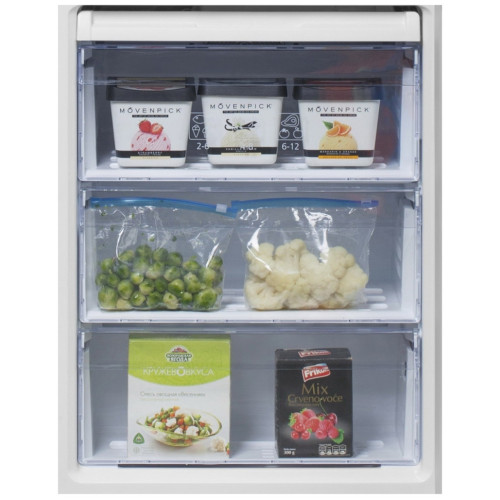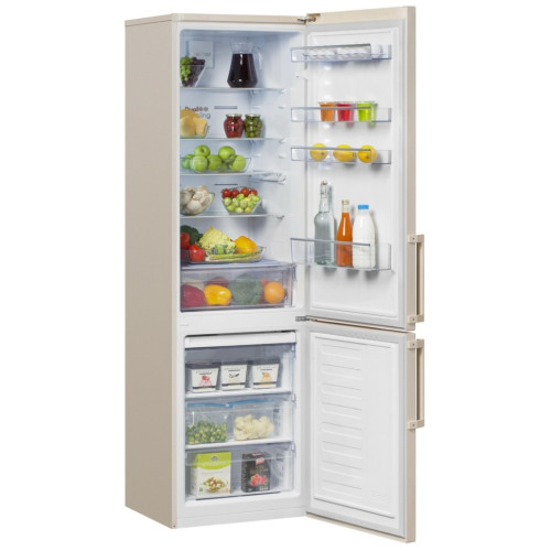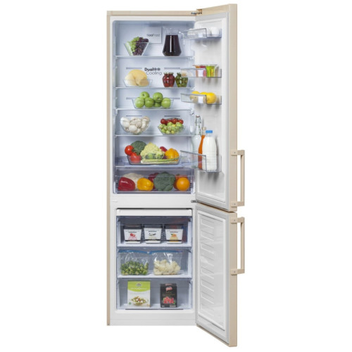 Двухкамерный холодильник Beko CNKL 7356 E 21 ZSB Двухкамерный холодильник с нижним расположением морозильной камеры Общие данные: Размеры: высота (см): 201 ширина (см): 59.5 глубина (см): 60 Общий объем/ Полезный объем: Холодильника (л): 356/335 Холодильной камеры (л): -/241 Морозильной камеры (л): -/94 Тип управления: электронный Класс энергопотребления: A+ Климатический класс: SN-T (от +10°С до +43°С) Количество компрессоров: 1 Годовое потребление энергии: 340 кВтч Цвет: бежевый Холодильное отделение: 5 полок из закаленного стекла Дверные полки: 4 Система двухконтурного охлаждения Система No Frost (Frost Free, Ноу Фрост) Светодиодная подсветка Ящик для овощей и фруктов Everfresh+ Антизапаховый фильтр Лоток для яиц Морозильное отделение: Система No Frost (Frost Free, Ноу Фрост) Время сохранения температуры без электричества: 17 ч Мощность замораживания: 5 кг/сутки 3 ящика Поддон для льда Icebank Дополнительная информация: Внешний сенсорный дисплей Сигнал открытых дверей Антибактериальное покрытие ручек Антибактериальное покрытие уплотнителя Уровень шума: 40 дБ Перенавешиваемые двери