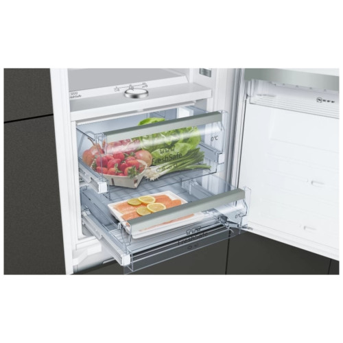 Fresh Safe 3 Plus 0°C — ящики с климат-контролем для оптимального хранения всех ваших свежих продуктов. Премиальное хранилище для ваших свежих продуктов. Свежим продуктам нужны лучшие условия, если они хотят сохранить свой вкус и полезные свойства. Fresh Safe 3 Plus 0°C со специальными отсеками. Есть климат-контролируемое хранилище с низкой температурой для фруктов и овощей. Кроме того, есть отделение для рыбы и мяса с собственной подачей воздуха с температурой 0°C. Это идеальное решение для амбициозных поваров и занятых домохозяйств. No Frost — больше не нужно размораживать морозильник. Нет необходимости в разморозке. Ледниковый период закончился. No Frost обеспечивает постоянный поток сухого воздуха через морозильную камеру. Отсутствие влаги означает отсутствие образования льда, поэтому вы можете навсегда попрощаться с грязным размораживанием. Регулируемые стеклянные полки. Регулируемые по высоте полки создают необходимое пространство для вдохновляющих блюд в вашем холодильнике. Полки с регулируемой высотой Ваш холодильник любит быть таким же творческим, как и вы. Отрегулируйте высоту полок вместе с размером ваших вдохновений. Большие предметы или большие порции — ваши регулируемые по высоте полки снова и снова щедро предлагают необходимое вам пространство. Наши полки из безопасного стекла с радостью вместят множество деликатесов в вашем холодильнике. Безопасное стекло Чем больше, тем лучше: нам нравится этот страстный подход к жизни и еде. На наших полках из ударопрочного стекла с удовольствием разместится более чем достаточно деликатесов для вашей семьи, друзей и гостей. Индивидуализируйте свои ящики с помощью различных вариантов загрузки, чтобы оптимально разместить замороженные лакомства