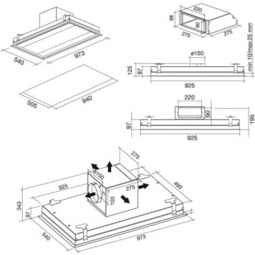 Falmec Nuvola Is White 90 (потолочная) CNUI90.03P2#ZZZB400N Вытяжка Falmec Design+ Nuvola 90 отличается лаконичностью дизайна и впишется в любой интерьер стиля хай-тек. Она может быть оснащена мотором мощностью от 800 до 1500 м³/ч в зависимости от площади помещения. Встраиваемая в потолок конструкция обеспечивают эффективную и комфортную эксплуатацию при сохранении полезного пространства. Выполнен прибор из нержавеющей стали AISI 304, гарантирующей его надёжность и долгий срок службы. Закалённое стекло декорирует нижнюю панель и способствует равномерному распределению по рабочей поверхности неонового освещения, которое служит как дополнительным, так и основным источником света. Электронное управление через дистанционный пульт облегчает использование. Четыре скорости всасывания помогают подобрать наиболее подходящий режим проветривания. Поддерживается также функция таймера, отключающая устройство через пятнадцать минут после его установки. Жироулавливающие металлические фильтры оберегают внутренний механизм от загрязнений. Очищение их производится в посудомоечной машине или вручную. О необходимости же гигиенической обработки подскажет встроенный индикатор. Фалмек Design+ Nuvola 90 может работать в двух режимах: отвода и рециркуляции. Способ монтажа выбирается сообразно предполагаемому типу применения. Первый предназначен для вывода загрязнённого воздуха в вентиляцию, тогда как второй очищает его посредством проведения потока через специальный угольный фильтр с адсорбцией нежелательных примесей и возвратом обратно уже без них. Последний нужно предварительно установить в корпус. Современные материалы и своевременное введение в разработки новейших технологий расширяют эргономику оборудования. Коллекция: Design+ Вид: встраиваемая Тип монтажа: потолочный Ширина, см: 90 Тип управления: электронное Пульт дистанционного управления в комплекте: есть Освещение: неоновое Материал корпуса: нержавеющая сталь AISI 304 Цвет: белый Цвет элементов оформления: прозрачное стекло Периметральное всасывание: есть Количество скоростей: 4 Режимы работы: отвод / циркуляция Тип жироулавливающего фильтра: кассетный металлический BASE Возможность работы с внешним мотором: есть Напряжение, В: 220-240 Частота, Гц: 50-60 Габариты, В х Ш х Г, мм: 195 / 343 х 973 х 540 Габариты ниши для встраивания, Ш х Г, мм: 940 х 505 Вес, кг: 23 Страна-производитель: Италия Гарантия, мес.: 36 ДОПОЛНИТЕЛЬНЫЕ АКСЕССУАРЫ Внешний мотор: внешний мотор 800 м³/ч Slim KACL.782#49F внешний мотор 1100 м³/ч Brushless KACL.770#41F внешний мотор 1300 м³/ч KACL.797#4AF внешний мотор 950 м³/ч KACL.798#41F Экстрактор: 1500 м³/ч KACL.796#4AF 1000 м³/ч KACL.786#41F Комплект фильтров для потолочной рециркуляции (только мотор Slim): Бренд: Falmec Модель: Nuvola Is White 90 (потолочная) CNUI90.03P2#ZZZB400N