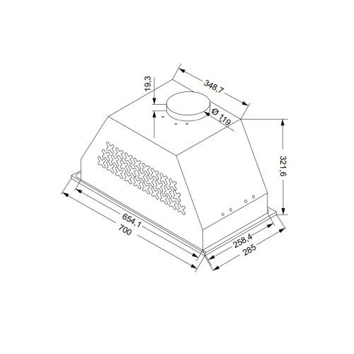 Описание Полностью встраиваемая кухонная вытяжка DeLonghi COSETTA 710 NB – надежное решение по устранению запахов на вашей кухне. o Вытяжка умеет работать в двух режимах: · Отвод - выведение воздуха при помощи вентиляционной системы. · Рециркуляция - очистка воздуха внутри вытяжки, не требует подключения к вентиляции. o Сенсорное управление – удобство при использовании и уход за вытяжкой без усилий за счёт отсутствия выступающих элементов. o 3 скорости - управляйте мощностью работы вытяжки. o Повышенная производительность 1200 м³/ч – гарантия качественной очистки воздуха. o Освещение - долговечная светодиодная лампа с приятным светом позволяет не включать основной свет на кухне при приготовлении пищи. o Черный цвет, стекло и металл - стильный выбор для вашего интерьера.