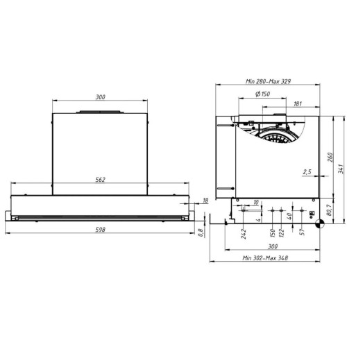 Встроенный в вытяжку таймер автоматически отключает её по прошествии определенного времени. Данная функция позволяет удалить оставшийся загрязненный воздух после приготовления пищи и добиться идеальной чистоты и запаха на кухне. Модель Sense рассчитана на монтаж в шкаф глубиной на 30 см, но при необходимости глубина корпуса может быть увеличена до 33.4 см. Монтаж осуществляется на 4 болта. Вытяжка устанавливается вместо нижней полки кухонного шкафа.