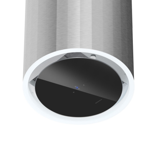 Дизайн вытяжки эффектно выделяется рельефными полосами вдоль цилиндрического корпуса и запоминающейся стеклянной панелью управления, выполненной в соответствии со всеми тенденциями рынка бытовой техники. Необычная вытяжка, благодаря стильному исполнению и техническим характеристикам, идеально впишется в интерьер любой современной кухни. Если вы считали, что вытяжка не должна выделяться в интерьере, то после знакомства с MAUNFELD Adelaide вы наверняка поменяете своё мнение. Это вытяжка цилиндрической формы, в которой стиль и элегантность сочетаются с высокой производительностью. Можно устанавливать на островной кухне. Эта модель работает в двух режимах: отвода (при подключении к системе общедомовой вентиляции) и рециркуляции (требуется установка сменного угольного фильтра). Корпус цилиндрической формы, выполненный из нержавеющей стали с термостойким покрытием, крепится на потолок над поверхностью плиты. В нижней части вытяжки находится алюминиевый многослойный жироулавливающий фильтр. Он легко вынимается и полностью разбирается, что сильно упрощает чистку. Управление вытяжкой осуществляется с помощью сенсорного дисплея, пульта дистанционного управления или с помощью жеста руки. Это делает использование вытяжки максимально удобным и простым. Вытяжка со стеклянной панелью управления станет истинным украшением вашей кухни и облегчит уход. Механическое управление с подсветкой позволит выбрать один из 4-х режимов работы вентилятора и включить LED освещение. Мощность мотора составляет 260 Вт. Максимальная производительность вытяжки достигает 1270 м3/ч, что позволяет использовать ее на очень большой кухне. Тихая работа и высокая эффективность вытяжки обеспечиваются периметральным принципом втягивания воздуха и особой конструкцией . Уровень шума при самой высокой скорости работы всего 52 дБ. Телескопический корпус вытяжки позволяет легко изменить высоту вытяжки при монтаже.