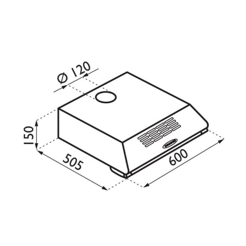 Основные характеристики. Установка подвесная. Размеры (ВхШхГ) 15х60х51 см. Ширина встраивания 60 см. Диаметр патрубка воздуховода 120 мм. Материал корпус: металл. Цвет корпус: серебристый. Количество двигателей 1. Функциональность, управление . Режимы работы отвод / циркуляция. Максимальная производительность 190 куб. м/ч. Количество скоростей 3. Управление кнопочное. Интенсивный режим нет. Освещение галогенная лампа, 20 Вт х 2. Особенности. Фильтр жировой. Максимальный уровень шума 54 дБ.