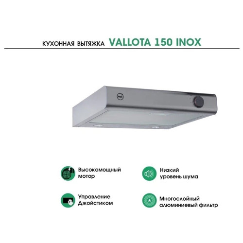 Красивая подвесная кухонная вытяжка VALOTTA 150 INOX проста в управлении и надежна в действии. Мощный мотор быстро и нешумно очистит вашу кухню от лишних запахов как в режиме рециркуляции, так и в режиме воздухоотведения. Дизайн и размеры этой модели позволяют вписать ее на кухню любого современного стиля и размера.Вытяжка VALOTTA 150 INOX исполнена в цвете металлик, а управляется она удобным джойстиком. При желании ее поверхность также можно использовать как декоративную полочку.Вся кухонная техника швейцарского бренда MBS соответствует всем современным европейским стандартам, а гарантия производителя составляет 3 года.