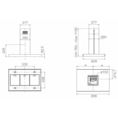 Основной материал передней панели: Стекло/нержавеющая сталь Основной цвет: Черный Освещение: Светодиодное (LED) Класс энергопотребления: B Особенности модели: Освещенность 381 lux, температура 3500К. Максимальная мощность - 265 Вт Управление : Сенсорное Экран (дисплей) : Текстовый/символьный Пульт ДУ : Нет Высота установки над панелью газ: 65 см Высота установки над электрической панелью: 50 см Тип вытяжки : Островная Варианты подключения : Отвод воздуха (Аспирация) Рециркуляция (Фильтрация) Максимальная производительность свободный выход воздуха : 1200 м3/ч Максимальная производительность подключение в канал (DIN EN-61591) : 710м3/ч Диаметр фланца : 150 мм Интенсивный режим : есть Угольные фильтры в комплекте : нет Шумность минимум : 51 Дб(А) Шумность максимум* : 73 Дб(А) Декоративный дымоход в комплекте : Да Жироулавливающие фильтры: Алюминиевые