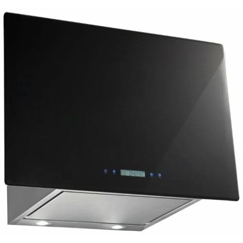 Каминная вытяжка Ширина: 90 см Цвет: Нержавеющая сталь, черное стекло 3 скорости работы Сенсорное управление Производительность 1100 м3/час Уровень шума 65 дБ Жидкокристаллический дисплей Таймер на 60 минут Освещение: галогеновые лампы, 2х20 W Невозвратный клапан Воздуховод из черной нержавеющей стали Угольный фильтр в комплекте Диаметр воздуховода - 150 мм.