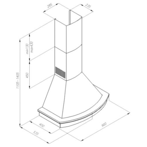 Устройство может использоваться не только в качестве вытяжки, но и как воздухоочиститель. Имеет 3 скорости, управление осуществляется с помощью механических кнопок. Вытяжка комплектуется алюминиевым фильтром.