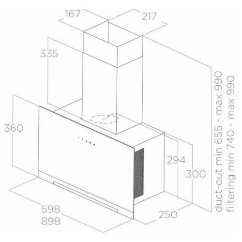Elica APLOMB-RS WH/A/90 – наклонная вытяжка шириной 90 см и глубиной всего 25 см, предназначенная для использования в помещениях площадью до 20 кв. М. Стильная и лаконичная модель не займёт много места и в то же время эффективно справится со своей главной задачей. Ничего сложногопанель управления встроена в фасад устройства. Она представляет собой сенсорное меню с отзывчивыми клавишами, с помощью которых вы зададите одну из трёх предложенных скоростей, установите таймер и активируете диодную подсветку в виде ленты, опоясывающей корпус прибора спереди, сзади и снизу. Универсальностьбытовой помощник работает в двух режимах: отвод и рециркуляция. В первом случае испарения направляются непосредственно в вентиляционную шахту, во втором же воздух очищается, проходя сквозь угольный фильтр, а затем снова возвращается в квартиру. Важные особенностиelica APLOMB-RS WH/A/90 оснащена мощным мотором, производящим предельно низкий уровень шума. Механизм автоматического отключения позволит предотвратить случайную поломку. О конструкциивытяжка снабжена надёжными настенными креплениями. Высота монтажа относительно газовой плиты должна составлять минимум 65 см. Для электрических варочных поверхностей эта цифра может быть чуть меньше, а именно 60 см.