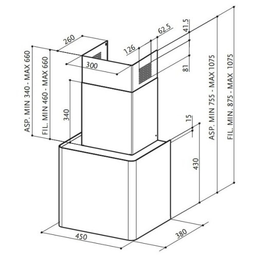 Общие данные: Габариты: 75.5-107.5x45x38 см Максимальная производительность: 580 м3/ч Освещение: светодиодное х2 Уровень шума (мин/макс): 54/69 дБ Максимальная мощность: 140 Вт Режимы работы: отвод / циркуляция Управление: электронный Управление: Кнопочное управление 3 скорости Дополнительная информация: Количество моторов: 1 Жироулавливающий фильтр: алюминиевый Диаметр воздуховода: 120/150 мм