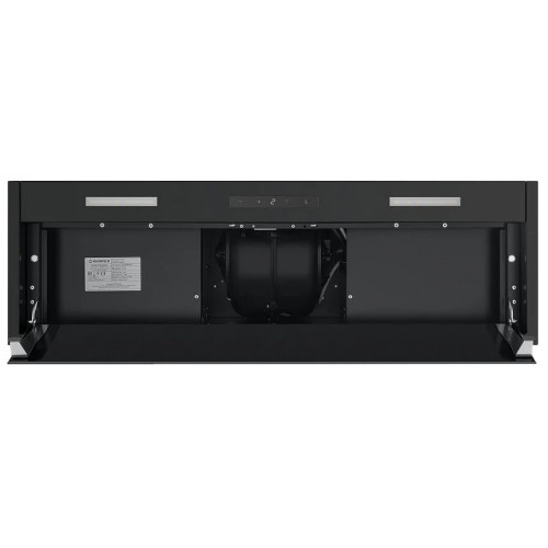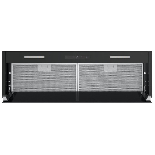 Ультрасовременная встраиваемая кухонная вытяжка шириной 90 см - это уникальное решение для кухни очень большой площади (до 50 кв.м). Модель монтируется в навесной шкаф над поверхностью плиты. Работает в двух режимах – отвода (при подключении к системе вентиляции) и рециркуляции (при использовании сменного угольного фильтра). Корпус изготовлен из нержавеющей стали. На фасаде белого цвета находится откидная панель, сделанная из закаленного глянцевого стекла. За ней располагается 2 жироулавливающих алюминиевых фильтра, которые легко вынимаются для чистки. Загрязненный воздух эффективно втягивается по периметру панели. Бесконтактное управление работой вытяжки – отличительная особенность этой модели. Простым взмахом руки вы изменяете скорость работы вентилятора и регулируете освещение. Каждому из 4-х режимов работы соответствует свой цвет индикатора на дисплее. Мощная подсветка рабочей зоны обеспечивается 2-мя LED-элементами по 2.1 Вт каждый. Также в комплекте идет пульт дистанционного управления. Мотор итальянского производства мощностью 260 Вт. Максимальная производительность – 1050 м 3 /ч. Качественная сборка и использование лучших комплектующих позволяет снизить уровень шума до 48 дБ.