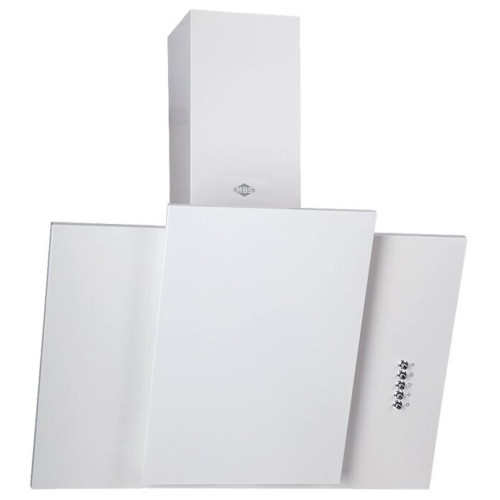 Наклонная пристенная вытяжка белого цвета с кнопочным управлением и корпусом выполненным из металла и стекла. Ширина вытяжки - 60 см, производительность - 500 куб. м/ч. Минимальный уровень шума, производимого вытяжкой составляет 50 дБ.