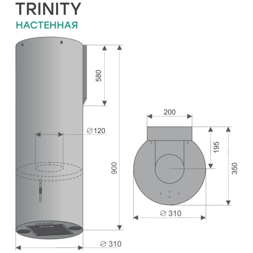Вытяжка выполнена в форме цилиндра. Геометрические формы повсеместно используется в современных дизайнерских проектах, они ассоциируются с простотой и лаконичностью, привносят в помещение гармонию и стиль. Внушительная высота корпуса вытяжки - 90 см. Особого внимания заслуживает бесшумная работа вытяжки - от 42 дБ, что способствует повышению комфорта на кухне. Все благодаря конденсаторному двигателю. Эти электродвигатели превосходят все распространенные аналоги, отличаются беззвучностью работы, высокими требования к безопасности и бесперебойности работы. Удобное электронное управление Soft Touch (мягкое нажатие) с красной индикацией на цифровом табло делают управление простым и точным. Пульт дистанционного управления на магните - позволяет вам управлять функциями с различных расстояний, удобно фиксируется на любой металлической поверхности. Современное точечное Led освещение - является энергоэффективным, 2 диодных светильника превосходно освещают рабочую зону. Корпус вытяжки выполнен из высококачественной нержавеющей стали, обработан абсорбирующим слоем, поэтому его легко содержать в чистоте. Вытяжка состоит из одной части, имеет два выхода для воздуховода - вертикальный и горизонтальный. Возможность выбора жироулавливающего фильтра: черный или алюминиевый. Основные характеристики Тип модели: Настенная Режим работы: Вытяжка/воздухоочиститель Диаметр выходного отверстия (? мм): 120 Напряжение питания: AC 230V ~50Hz Производительность: 800 м3 Кол: во двигателей: 1 Потребляемая мощность двигателя: 185 Вт Количество степеней скорости: 3 Уровень шума (мин / макс): 42 / 56 Дб Управление: Электронное + цифровое табло + пульт ДУ. Таймер (таймер: 10-90 мин). Освещение: LED 2х3 Вт Угольный фильтр: KFCR 130 - 2 шт (опция)