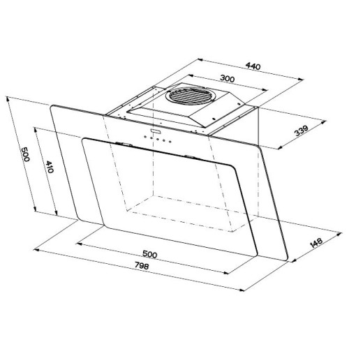 Тип вытяжки: наклонная ; Установка: пристенная; Ширина вытяжки, см: 80; Глубина вытяжки, см: 34; Ширина встраивания, см: 80; Материал корпуса: корпус: металл/стекло; Цвет: черный; Диаметр патрубка воздуховода, мм: 150; Фильтр: жировой, индикатор загрязнения; Управление: сенсорное, электронное; Максимальная производительность, м?/час: 660; Количество двигателей: 1; Кол-во скоростей: 4; Размеры: 80*33,9*50; Освещение: светодиоды