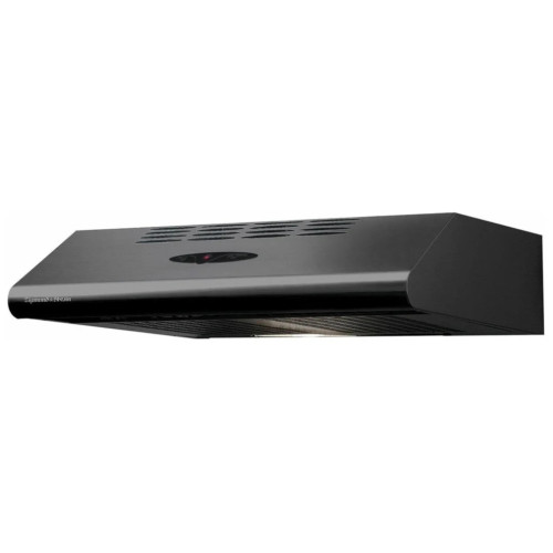 Панельная кухонная вытяжка Ширина: 60 см Цвет: чёрный 3 скорости работы Механическое управление слайдером Антивозвратный клапан Производительность: 320 м3/час Режимы: отвод/рециркуляция Уровень шума: 48/51/61 дБ Освещение: лампа накаливания, 40 Вт Диаметр воздуховода - 120 мм