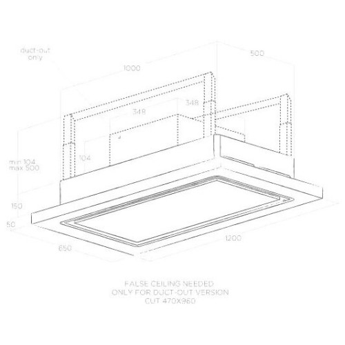 Основные характеристики - Установка: встраиваемая в потолок - Потребляемая мощность: 214 Вт - Производительность: 1500 м3/ч - Максимальный уровень шума: 64 дБ Управление - Количество скоростей: 3 - Дисплей: нет - Дистанционное управление: да - Пульт ДУ: в комплекте Дополнительная информация - Режим работы: отвод/рециркуляция - Интенсивный режим: да - Тип фильтра: жиропоглощающий фильтр, угольный - Жиропоглощающий фильтр: алюминиевый - Количество жиропоглощающий фильтров: 2 - Количество угольных фильтров: 2 - Жиропоглощающий фильтр можно мыть в посудомоечной машине: да - Тип освещения: светодиодное (LED) - Количество ламп освещения: 1 - Мощность одной лампы: 28 Вт - Дополнительная информация: Wi-Fi модуль, регулирование функций вытяжки и освещения через приложение Elica App, система дистанционного контроля Smart Remote control Корпус - Цвет: бежевый - Материал корпуса: дерево, металл Размещение - Минимальная высота над газовой плитой: 100 см - Минимальная высота над электрической плитой: 70 см - Диаметр штуцера: 150 мм Габариты и вес - Высота: 20 см - Ширина: 120 см - Глубина: 65 см - Высота встраивания: 50 см - Ширина встраивания: 100 см - Глубина встраивания: 50 см