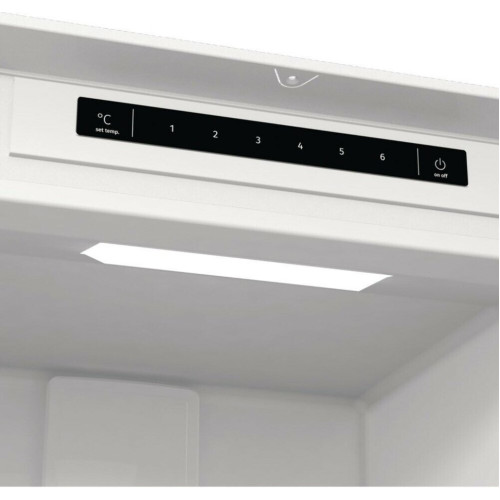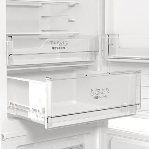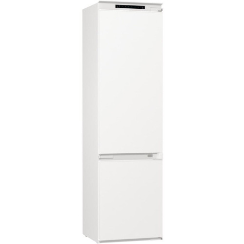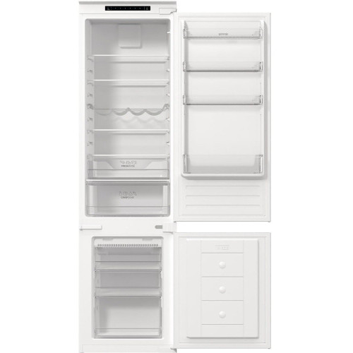 Встраиваемый двухкамерный холодильник Gorenje NRKI419EP1 — это вместительная и при этом довольно компактная модель. Ширина и глубина устройства — 54 см, высота — 193,7 см. Для встраивания в мебельный гарнитур вам понадобится ниша размерами 194×56-57×56 см. При этом вы всегда можете подстроить изделие под свои потребности, например, перевесить дверцу на нужную сторону. При этом благодаря слайдерным креплениям мебельных фасадов на нее не будет приходиться дополнительной нагрузки. Сама дверца выполнена из металла и открывается на правую сторону. В модели один компрессор, система охлаждения — независимая. Встраиваемый двухкамерный холодильник Горенье NRKI419EP1 оснащен технологией NoFrost DualAdvance. Влажный воздух с помощью вентилятора выводится из морозильного отделения, поэтому там не намерзает лед. Размораживание и холодильной камеры, и морозилки происходит автоматически. Объем обоих отделений — 255 и 56 л соответственно. Управление моделью — электронное, всю информацию о ее работе вы увидите на цифровом дисплее. Например, устройство оборудовано индикатором температуры для холодильного отделения. А его внутреннее пространство освещено светодиодами, расположенными на потолке. Морозильный отсек холодильника находится внизу и оборудован тремя ящиками для продуктов. Он может заморозить до 2,6 кг продуктов в сутки. В холодильном отделении вы найдете специальный отсек для продуктов, которые должны сохранять свежесть и аромат. К ним относятся зелень, овощи, фрукты, а также охлажденное мясо и птица. Внутри большого отделения пять полочек из закаленного стекла. На особой металлической полке поместится до четырех бутылок. На дверце можно расположить лоток для яиц или льда вместимостью в шесть единиц и три полки для продуктов или лекарств. Ключевые преимущества: NoFrost DualAdvance Цифровой дисплей Контейнер FreshZone