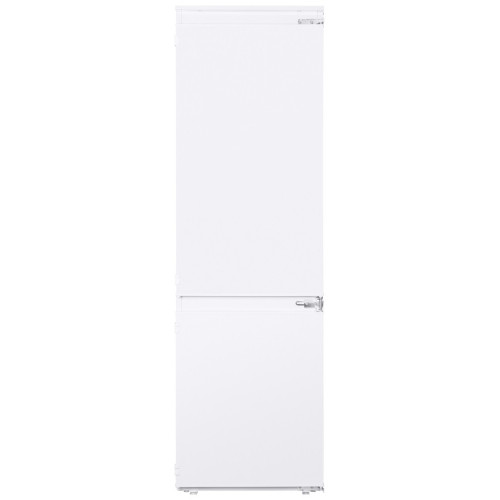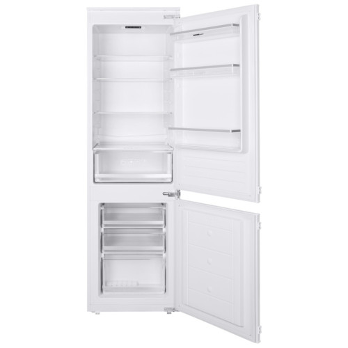 Современный встраиваемый двухкамерный холодильник высотой 177 см. Общим объем холодильной камеры – 197 л, морозильной – 76 л. Корпус шириной 54 см сделан из металла. Внутренняя часть выполнена из антибактериального белого пластика легкой очистки. Предусмотрена возможность перенавешивания двери. В верхней холодильной камере предусмотрено: 4 стеклянные полки с металлической окантовкой 1 ящик для фруктов и овощей 3 боковых полки на дверце 2 лотка для яиц В нижней морозильной камере: 3 ящика, с охлаждающим элементом под каждым отсеком емкость для льда Управление осуществляется с помощью термостата. На дисплее вы можете выбрать одну из 7 степеней охлаждения. Климатический класс морозильника - ST. Это указывает на то, что он выполняет свои функции при температуре окружающей среды от +16°C до +38°С. Низкий уровень шума при работе компрессора (39 Дб) позволяет устанавливать его в кухне-гостиной. Класс энергопотребления: A+.