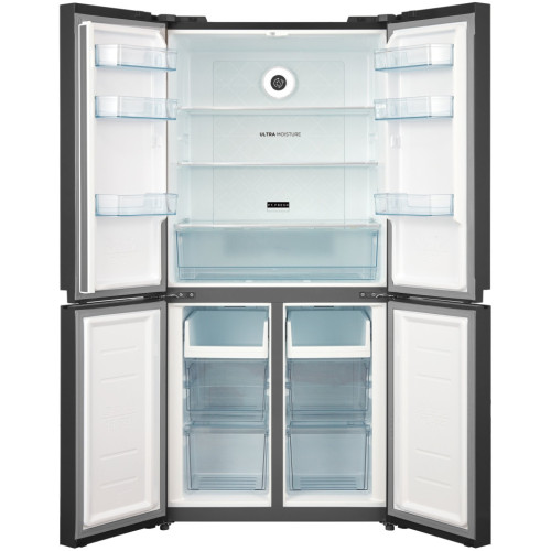 Внушительный холодильник БИРЮСА CD 466 имеет 3 большие камеры с 4 дверями. Он вмещает 456 л пищи, из которых 303 л приходится на охладительный отсек. Уровень шума здесь 42 дБ, а значит холодильник работает практически бесшумно. Отслеживать температуру вы можете с помощью дисплея с внешней стороны. Размораживание холодильника БИРЮСА CD 466 BG происходит по системе No Frost, которая убирает абсолютно любую наледь. Холодильная камера имеет 3 стеклянные полки и один прозрачный ящик. Имеется функция суперохлаждения. В морозилке 4 больших ящика и 2 полки. Заморозка происходит со скоростью 10 кг продуктов в сутки. Можно активировать функцию «Суперзаморозка» для быстрой заморозки продуктов. Дисплей с внешней стороны позволяет следить за температурой внутри холодильника.