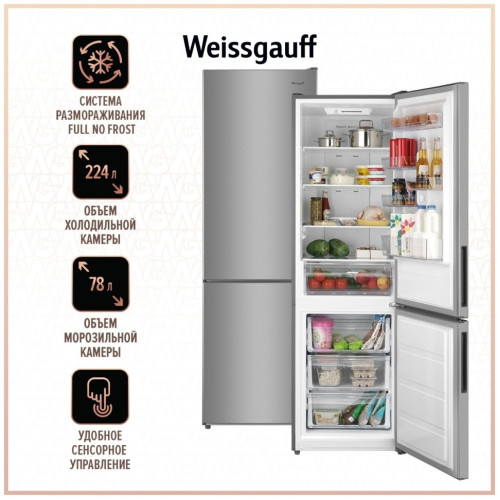 Отдельностоящий холодильник Weissgauff, выполненный в современном дизайне с фасадом в белом и серебристом цвете, обладающий полной системой размораживания Full No Frost и полностью электронным управлением - это соотношение превосходной эргономики внутреннего пространства, технологического совершенства и великолепия внешнего дизайна!