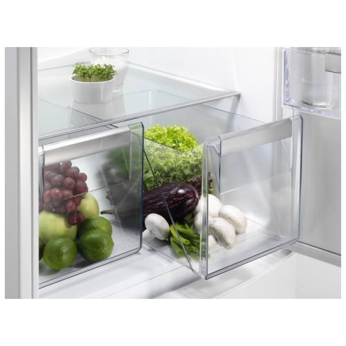 Тип холодильник Тип установки встраиваемый Габариты (ВхШхГ) 1772x540x549 мм Габариты для встраивания (ВхШхГ) 1780х548х551 см Общий объем 273 л Полезный объем холодильной камеры 195 л Полезный объем морозильной камеры 72 л Расположение морозильной камеры снизу Мощность замораживания 4 кг/сут Система охлаждения динамическая Система размораживания холодильной камеры ручная Система размораживания морозильной камеры Low Frost Период хранения в случае отключения электроэнергии 21 ч Климатический класс SN, N, ST, T Хладагент R600a Уровень шума 35 дБ Напряжение питания 220-240 В Класс энергоэффективности А+ Номинальная потребляемая мощность 140 Вт Годовое энергопотребление 291 кВт/год Освещение LED Управление сенсорное Количество полок в холодильном отделении 5 шт Материал полок стекло Сигнализация повышения температуры в камере есть Количество дверей 2 шт Сигнализация открытой двери есть Тип двери перенавешиваемая Крепление фасада на скользящих направляющих Цвет белый Длина электрического кабеля 2.4 м Срок гарантии 1 год
