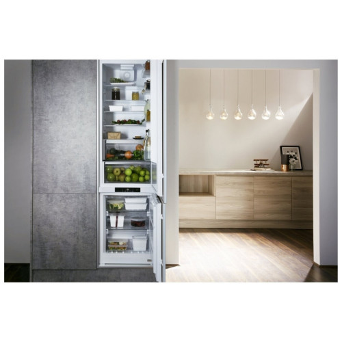 Hotpoint-Ariston BCB 8020 AA F O3 с нижним расположением морозильной камеры и высоким классом энергопотребления "А+". Два варианта навешивания дверей избавят от проблемы размещения холодильника на кухне. Полки холодильной камеры из сверхпрочного стекла легко моются и позволяют выдерживать значительный вес, а также они легко регулируются по высоте, что дает возможность разместить продукты в холодильной камере, максимально используя ее объем. Морозильная камера позволяет замораживать до 6 кг продуктов в сутки, тем самым сохраняя их вкусовые и питательные свойства. Выдвижные контейнеры морозильной камеры выполнены из прозрачного пластика, что позволяет увидеть содержимое, не выдвигая их.