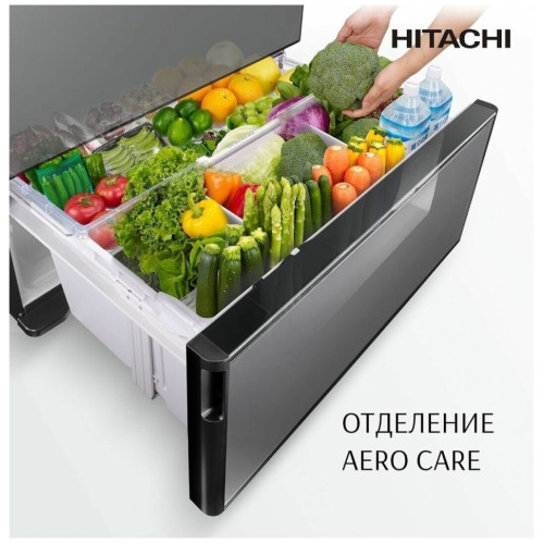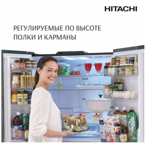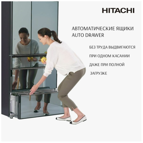 Премиальный холодильник Hitachi R-ZX 740 KU X в роскошной отделке «зеркальный кристалл» из термостойкого стекла с защитой от царапин и пятен, производство - Япония. ? Регулируемая функция Auto Door позволяет без усилий легкими касаниями открывать дверцы холодильника и выдвигать даже полностью загруженные ящики. При желании функцию можно отключить. ? В модели реализованы самые современные технологии Hitachi, обеспечивающие бережное хранение: • герметичное вакуумное отделение с платиновым катализатором сохраняет сочность и естественную пользу продуктов; • отделение Aero Сare с модулем контроля влажности поддерживает свежесть и структуру овощей; • режим Delicious Freezing в морозильном отделении минимизирует потерю пищевой ценности продуктов при заморозке; • специальная система тройной фильтрации Triple Deodorant Filter улавливает и устраняет запахи, а также купирует активность захваченных им бактерий. ? Высокоточный и надежный инверторный компрессор обеспечивает оптимальную мощность охлаждения в зависимости от температурных условий снаружи и внутри холодильника. ? Энергосберегающие технологии Frost Recycling Cooling, вакуумная изолирующая панель, функция запоминания Smart Lifestyle Memory и система управления Multi-valve Control повышают энергоэффективность работы. ? Удобный Eco Intelligent Control с индикаторами на внешнем сенсорном дисплее панели управления, сокращает энергопотребление примерно на 10–12% по сравнению с обычным режимом холодильника. ? Холодильник с максимальной вместимостью очень удобен в организации пространства хранения - полки и карманы легко регулировать по высоте, предусмотрены отделения для вертикального хранения продуктов. ? Автоматический ледогенератор работает без подключения к водопроводу.