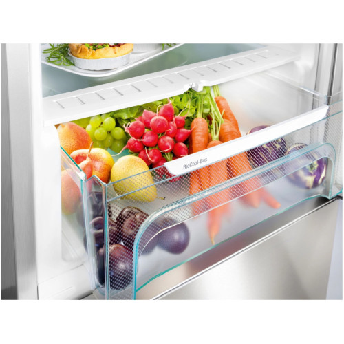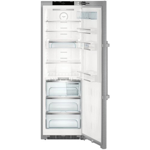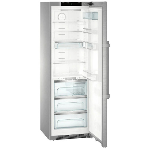 Холодильник Liebherr SKBes 4380 станет отличным дополнением к вашей кухонной технике, а цвет нержавеющей стали без проблем впишется в любой дизайн. Доводчик обеспечивает плавное закрытие двери, даже если полки полностью загружены. Алюминиевая ручка со встроенным толкателем элегантна, прочна и удобна. За счет покрытия SmartSteel поверхность легче очищается, устойчива к царапинам и отпечатки пальцев почти не видны. Три контейнера Bio Fresh создают индивидуальный климат для различных видов продуктов. В отделениях Dry Safe можно снизить температуру до ?2 градусов и хранить рыбу. Овощи и фрукты лучше хранить в Hydro Safe — здесь чуть выше 0 градусов, это предотвращает высыхание и замерзание, увеличивая срок годности продуктов. Для бутылок предусмотрена специальная полка, которую можно регулировать по высоте.