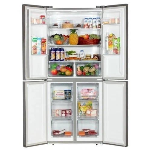 Холодильник Hisense RQ-515N4AD1 вместит очень большие блюда – в нём установлены широкие стеклянные полки без центральной перемычки. Устройство также снабжено двумя ящиками с нулевой температурой, идеально подходящими для хранения скоропортящихся продуктов – мяса и рыбы, фруктов, овощей и зелени. МНОГОПОТОЧНОЕ ОХЛАЖДЕНИЕ Не задумывайтесь над выбором полки. Холодильник равномерно распределяет потоки воздуха, поддерживая одинаковый микроклимат во всех уголках внутреннего пространства. НАСТОЯЩАЯ ПРАКТИЧНОСТЬ Забудьте о частом размораживании! Постоянная циркуляция воздуха предотвращает нарастание льда и инея на внутренних стенках. ЭЛЕКТРОННОЕ УПРАВЛЕНИЕ LED-дисплей на наружной стороне дверцы подскажет, какая температура поддерживается в каждом отделении. Вы можете активировать режимы ускоренного охлаждения и замораживания одним нажатием кнопки, подготовив устройство к большой загрузке. ПОЛНАЯ ИНТЕГРАЦИЯ Минималистичное оформление делает холодильник отличным дополнением к интерьеру кухни в стиле хай-тек. Вы можете устанавливать его вплотную к мебели и бытовой технике – полки и ящики выдвигаются даже в том случае, когда дверцы открыты ровно на 90 градусов.