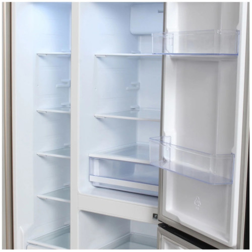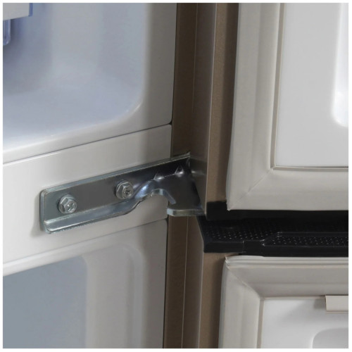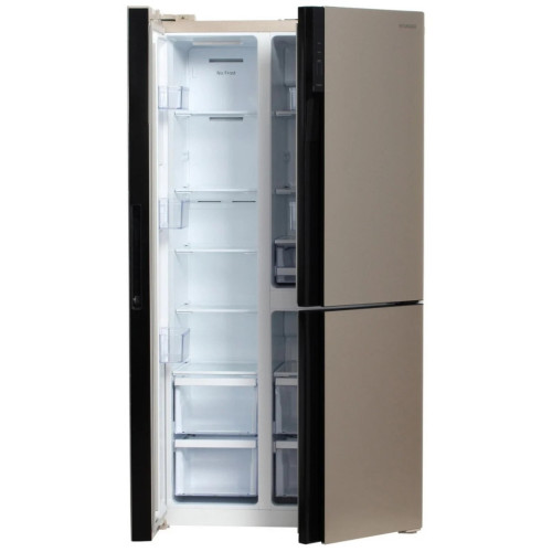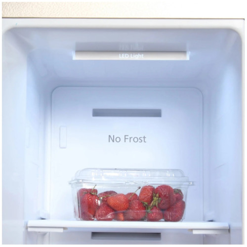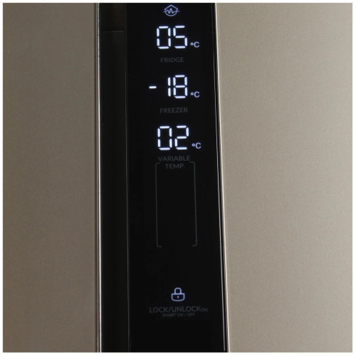 Холодильник в цвете «шампань» имеет солидную вместительность, полезный объем составляет 552 литра. Благодаря этому в нем можно разместить большое количество продуктов и напитков в холодильном отсеке. Морозильный отсек оснащен выдвижными корзинами и обеспечит на многие месяцы сохранность ваших продуктов. Универсальная камера с температурой от минус 4 до плюс 8 позволяет использовать ее и как легкое морозильное отделение и как дополнение к холодильному отделению, а также как зона свежести для скоропортящихся продуктов. Система NoFrost позволит вам забыть о разморозке холодильника, ведь наледь в нем не образуется. Управление холодильником сенсорное, вся информация выводится на крупный LED дисплей. При отключении электроэнергии внутри холодильника длительное время сохраняется заданная температура, а продукты остаются свежими. Инверторный компрессор. Тише, экономичней, надежнее