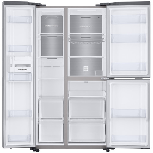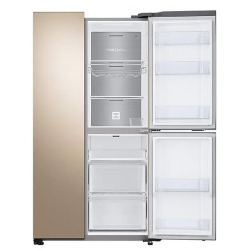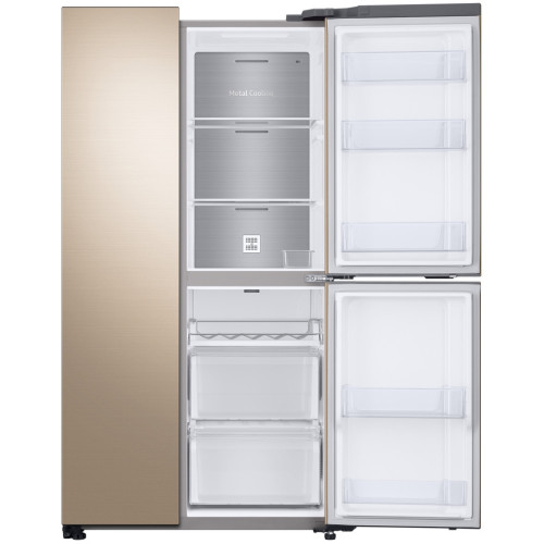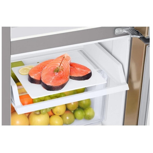 Великолепен снаружи. Больше пространства внутри. В холодильник невероятного объема 634 литров поместится больше продуктов. Уникальная технология SpaceMax™ позволяет увеличить полезный объем за счет уменьшения толщины стенок, внутри которых теплоизоляция с улучшенными свойствами. Поэтому холодильник обладает увеличенной емкостью без увеличения внешних габаритов. Многопоточная система охлаждения All-Around Cooling. Продукты хорошо охлаждются на всех полках и карманах. Система равномерного охлаждения непрерывно контролирует температуру в разных уголках камеры и равномерно распределяет холодный воздух, благодаря чему продукты долго сохраняют свою свежесть. Сокращение потерь холода. Храните и размещайте продукты более эффективным способом для максимального удобства. Трех-дверная модель оснащена двумя холодильными и одной морозильной камерами. Разделение на верхнюю и нижнюю холодильные камеры позволяют улучшить сохранение холода, что обеспечивает экономию электроэнергии на. Кроме того, две камеры позволяют более удобно разместить продукты. Пластина охлаждения Metal Cooling. Пластина удерживает холод внутри холодильника, даже если вы часто открываете его. В результате ваши продукты лучше хранятся. Металлическая пластина на задней стенке холодильной камеры оптимизирует равномерное распределение температуры в камере. При закрытии дверцы, холодильник быстро восстанавливает заданную температуру. Больше льда, больше места в морозильной камере. Тонкий льдогенератор позволяет сохранить объем для хранения продуктов, но готовит достаточное количество льда. Льдогенератор встроен в дверцу, освобождая дополнительное место для продуктов. А прозрачная пластиковая крышка позволяет контролировать количество оставшегося льда. Естественный аромат продуктов без посторонних запахов. Встроенный деодорирующий фильтр устраняет сильные запахи благодаря продуванию воздуха через угольные фильтры. И вам не нужно использовать другие средства для удаления запахов.