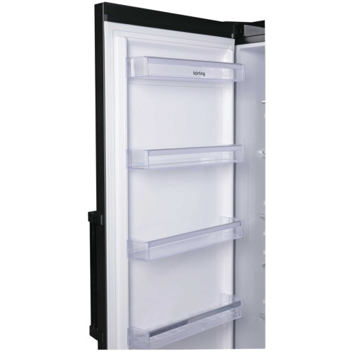 Возможность установки «Side-by-Side» С помощью соединительного элемента, который входит в комплект к холодильной камере, два прибора объединяются в просторный двухдверный Side-by-Side с большим объёмом для продуктов. Электронное управление Электронное управление обеспечивает самую точную регулировку и контроль температуры в холодильной и в морозильной камере. Динамическое охлаждение Специальный вентилятор в холодильной камере обеспечивает перемешивание воздуха и соответственно равномерное распределение температуры. Также динамическая система способствует уменьшению, смешиванию запахов в холодильнике и быстрому охлаждению большого количества продуктов. Функция интенсивного охлаждения «Super Cool» Если вам нужно охладить большое количество продуктов после посещения магазина или при подготовке к семейному торжеству, тогда вам поможет функция «Super Cool»! Она установит необходимую температуру внутри холодильника, чтобы продукты были охлаждены моментально! Светодиодное освещение «LED Light» Светодиодное освещение является самым экономичным и эффективным. Яркое и равномерное освещение камеры помогает моментально найти необходимый продукт, прочитать состав и рекомендации по срокам его хранения, не прибегая к дополнительной подсветке кухонного пространства. Зона свежести Дополнительный контейнер, расположенный рядом с зоной морозильного отделения, устанавливает уникальный микроклимат, который в сочетании с пониженной температурой позволяет дольше сохранять вкус, питательные вещества и свежесть большинства видов продуктов, в особенности фруктов и овощей. Перенавешивание дверцы Возможность самостоятельно перевешивать двери позволит вам выбрать сторону, в которую будет открываться холодильник. Дверцу можно перевесить даже самим, без обращения в сервисный центр. Высокий класс энергоэффективности Благодаря использованию высокоэффективных компрессоров и самых современных хладагентов, все холодильники Korting имеют самые высокие классы энергопотребления: A и A+. Это позволяет существенно снизить годовые затраты на электроэнергию и меньше воздействовать на окружающую среду! Хранение при отключенном питании Даже если прибор будет отключен от электроэнергии, в морозильной камере будет поддерживаться достаточно низкая температура, приемлемая для хранения скоропортящихся продуктов.