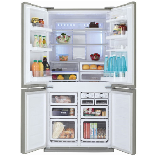 Новая модель 4-дверных холодильников SHARP выполнена в обновленном дизайне из нержавеющей стали и имеет невероятно большой полезный объем 605 литров. Большой объем и широкие полки из сверхпрочного закаленного стекла позволяют размещать в холодильной камере посуду шириной до 70 см, например, противень с пирогом, гарантируя максимальное удобство при хранении габаритных блюд или большого количества продуктов. Холодильник оснащен инновационными технологиями качественного и длительного хранения продуктов: уникальная технология Plasmacluster активно деактивирует бактерии и споры грибков плесени в воздухе внутри камер, предотвращая их воздействие на продукты; Уникальная Гибридная Система Охлаждения быстро и равномерно охлаждает воздух, исключая эффект заветривания продуктов; Зона Сохранения Свежести позволяет дольше хранить парное мясо, птицу или рыбу. Внутреннее освещение камер - светодиодное. С помощью внешней электронной панели управления, расположенной на уровне глаз, легко управлять настройками температуры в камерах, функциями Быстрое замораживание, Отпуск, Эко-режим. Панель управления можно заблокировать от случайного изменения настроек детьми.