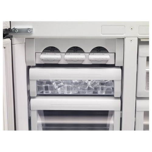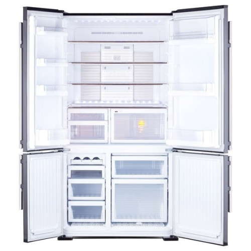 Холодильник Mitsubishi Electric MR-LR78G-DB-R — это самые современные технологии. Внутри камера имеет особое антибактериальное покрытие, сделанное на основе ионов серебра, которое эффективно борется с возникновением бактерий и микробов. Система фильтрации выводит все запахи из холодильника, таким образом, они не смешиваются, и продукты сохраняют свой изначальный аромат. Четырехдверная модель устроена так, что холодильная камера располагается сверху, а морозильная — снизу. Просторная верхняя камера имеет систему охлаждения Multi Airflow с двумя вентиляторами, которые равномерно распределяют холод по всему внутреннему пространству. Всего в холодильном отсеке четыре полки, три из них можно регулировать по высоте. Все они сделаны из прочного закаленного стекла. На дверцах — семь полок, в том числе подставка для яиц и полка для бутылок.
