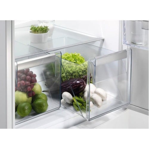 Встраиваемый холодильник Electrolux ENT6TF18S. Встраиваемый холодильник имеет полезный объем 253 л. Этого достаточно для одновременного хранения различных запасов на длительный период времени. Встроенный вентилятор равномерно распределяет воздух, что позволяет сохранить полезные свойства и витамины продуктов. Технология No Frost препятствует образованию инея и льда на стенках модели и упрощает процесс ухода за устройством. Холодильная камера оснащена пятью стеклянными полками и двумя корзинами для овощей и фруктов. Это позволяет соблюдать товарное соседство. Яркие светодиоды отвечают за равномерное освещение внутреннего пространства. Холодильник имеет морозильную камеру с тремя прозрачными ящиками, за счет чего можно быстро найти необходимый продукт. Для охлаждения заготовок используется экологически чистый и безопасный для окружающей среды хладагент R600a. Безопасный режим работы обеспечивают сигнализации повышения температуры и открытой двери. Уровень шума составляет 36 дБ, за счет чего модель не доставляет дискомфорт окружающим в ночное время суток. В комплекте с устройством поставляется подставка для яиц. * Страна Италия * Гарантия 1 год * Тип двухкамерный * Количество дверей 2 * Индикация температуры морозильной камеры, холодильной камеры * Вентилятор для распределения температуры. * Длина сетевого шнура 2.4 м ХОЛОДИЛЬНАЯ КАМЕРА * Система размораживания холодильной камеры NoFrost * Полки стекло * Количество полок 5 * Количество полок на двери 4 * Материал полок на двери пластик * Освещение холодильной камеры светодиодное МОРОЗИЛЬНАЯ КАМЕРА * Система размораживания морозильной камеры NoFrost * Количество ящиков 3 * Материал ящиков пластик * Цвет ящиков прозрачный * Количество отделений 1 * Количество полок 2