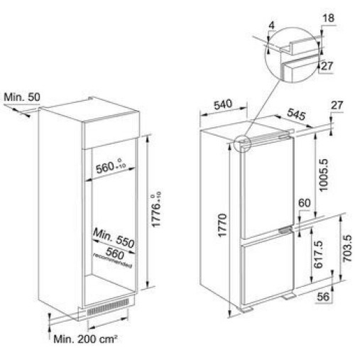 Производитель: Franke Цвет: белый Общий объем: 250л Общий объем холодильной камеры: 182л Общий объем морозильной камеры: 68л Оттаивание холодильной камеры: автоматическое Оттаивание морозильной камеры: Low Frost Расположение морозильной камеры: снизу Максимальный уровень шума: 34дБ Класс энергопотребления: A++ Годовое потребление энергии: 234кВтч Управление: электромеханическое Дисплей: Да Зона свежести: Да Количество компрессоров: 1 Мощность замораживания: 9кг/сутки Хладагент: R600a (изобутан) Климатический класс: N SN ST T Особенности: внутренняя подсветка звуковая сигнализация открытой двери индикация включения/работы индикация открытой двери лоток для льда лоток для яиц охлаждение с вентилятором суперзаморозка Ширина: 54см Глубина: 54.5см Высота: 177см Ширина встраивания: 56см Глубина встраивания: 55см Высота встраивания: 177.6см