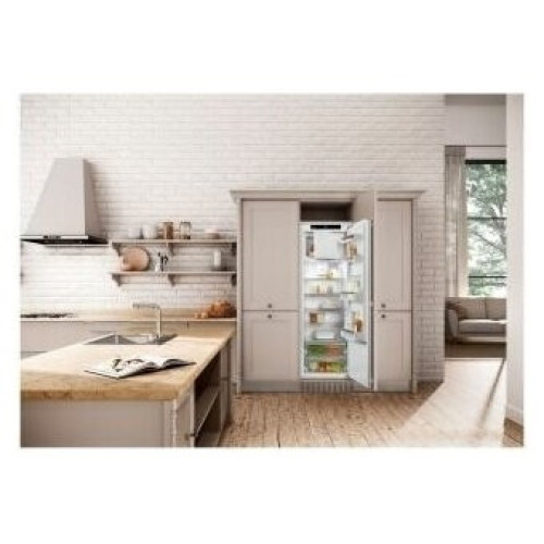 Встраиваемый холодильник Liebherr IRf 5101 — надежный и тихий, он способен гармонично вписаться в любую кухню, поскольку полностью маскируется мебельными панелями, с жестким креплением. Такая фиксация способствует более полной интеграции, а также не позволяет дверцам перекоситься со временем. Технология SuperSilent обеспечивает низкий уровень шума, а дополнительная шумоизолирующая прослойка в виде фасадов кухонного гарнитура, делает его почти неслышным. В двери предусмотрен доводчик SoftClose плавно и мягко закрывающий ее, поэтому вы не сможете случайно оставить ее открытой. Встраиваемый холодильник Либхер IRf 5101 имеет 2 контейнера EasyFresh, которые являются максимально герметичными, поэтому к фруктам и овощам не попадает кислород, и скорость размножения бактерий и микробов значительно замедляется, позволяя дольше сохранять продукты свежими. Система PowerCooling помогает поддерживать равномерный температуры во всей камере, а появление неприятных запахов предотвращает встроенный фильтр с активированным углем. Полки Comfort GlassLine имеют защитную окантовку и могут переставляться по высоте. Предусмотрена также морозильная камера объемом 33 л, в которой можно хранить замороженные продукты и полуфабрикаты, с системой охлаждения SmartFrost, которая отличается сниженным образованием инея. Технология SmartDevice-Box позволяет подключать прибор к сети Wi-Fi, и управлять им с мобильного устройства. Кроме регулировки температуры доступны режимы SuperCool, Отпуск, Вечеринка, CleanMode и другие. Они позволяют расширить возможности использования и подстраивать их под различные нужды. Ключевые преимущества: Низкий уровень шума SuperSilent Технология SmartDevice-Box Система охлаждения SmartFrost
