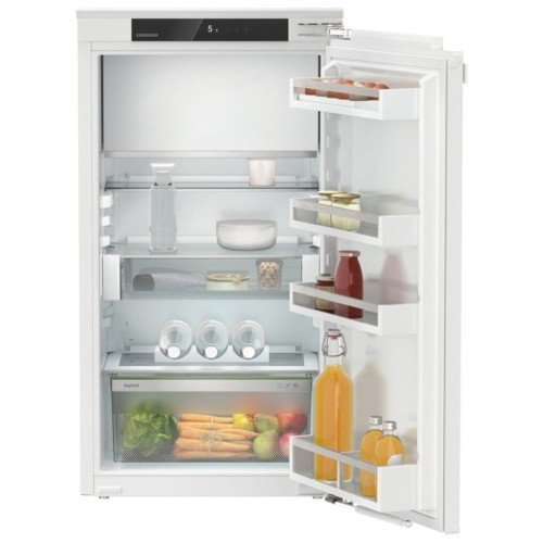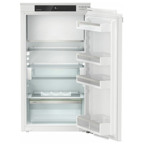 Встраиваемый холодильник Liebherr IRe 4021 с морозильной камерой — современная модель немецкого производства, сочетающая в себе черты и функции техники comfort и premium-класса. Электронное управление осуществляется с помощью дисплея и сенсора, выбрать необходимые настройки и режимы можно и дистанционно с помощью технологии SmartDevice-Box, то есть специального приложения в вашем мобильном телефоне. Полезный объем холодильной камеры составляет 139 л., полезный объем морозильной камеры, расположенной внутри холодильника сверху — 16 л. Холодильная камера встраиваемого холодильника Либхер IRe 4021 оснащена автоматической системой размораживания и автоматическим режимом SuperCool, то есть суперохлаждения. Он пригодится в случае, когда вы возвращаетесь домой с большим количеством покупок. Техника за несколько часов до загрузки продуктов в холодильник понизит температуру, что позволит сохранить все продукты как можно дольше без эффекта подтаивания. Полки из закаленного стекла регулируются по высоте. Зона свежести EasyFresh, перекрывающая доступ кислорода к овощам и фруктам, предназначена для максимально долгого сохранения свежести и всех полезных свойств. Модель оборудована функциями CleaningMode для удобной и легкой уборки, специальными режимами работы техники PartyMode во время вечеринки, HolidayMode во время вашего отпуска и SabbathMode на время соблюдения шаббата. Морозильная камера имеет систему охлаждения SmartFrost, снижающую интенсивность образования инея и наледи и тем самым обеспечивающую необходимость реже проводить разморозку. В модели предусмотрена защита от детей и блокировка дисплея. Об открытой двери, повышении температуры или неисправности техники вам сообщат специальные звуковые и световые сигналы. Ключевые преимущества: Морозильное отделение Светодиодное освещение Низкий уровень шума