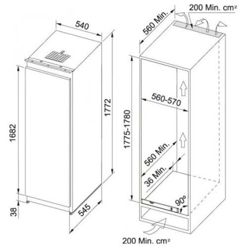 Установка встраиваемый Цвет белый Высота, см 177.2 Ширина, см 54 Глубина, см 54.5 Габариты ниши для встраивания, см 177.5-178 х 56-57 х 56 Объем, л 301 Бренд FRANKE Функционал Индикаторы открытой двери акустический сигнал Индикаторы повышения температуры акустический сигнал Холодильное отделение Объем холодильной камеры, л 301 Количество полок, шт. 6 Количество полок на дверце, шт. 7 Количество ящиков для овощей, шт. 2 Количество подставок для яиц, шт. 1 Вентиляция есть Зона свежести есть Режим быстрого охлаждения есть Технические характеристики Скользящие направляющие двери есть Возможность перенавешивания двери есть Количество компрессоров 1 Класс энергопотребления A+ Частота, Гц 50-60 Напряжение, В 220-240 Расход электроэнергии, кВт/год 145 Уровень шума, дб 37 Дополнительная информация Гарантия 2 года Страна-производитель Словения